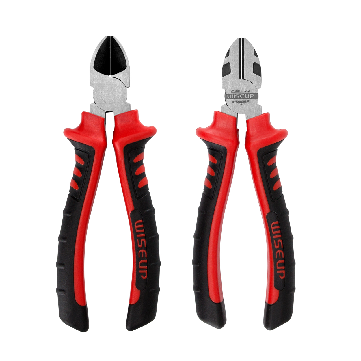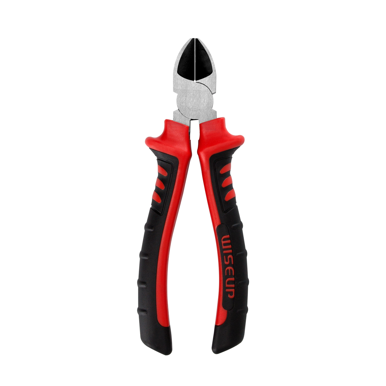 سیم چین صنعتی برند وایزآپ Wiseup ساخته شده از فولاد کروم وانادیوم با کیفیت بسیار بالا دارای روکش دسته ضد لغزش و ضد تعریق مناسب برای کار بر روی سیم‌های تا ولتاژ 1000 ولت سایز 6 اینچ / 150 میلی متر